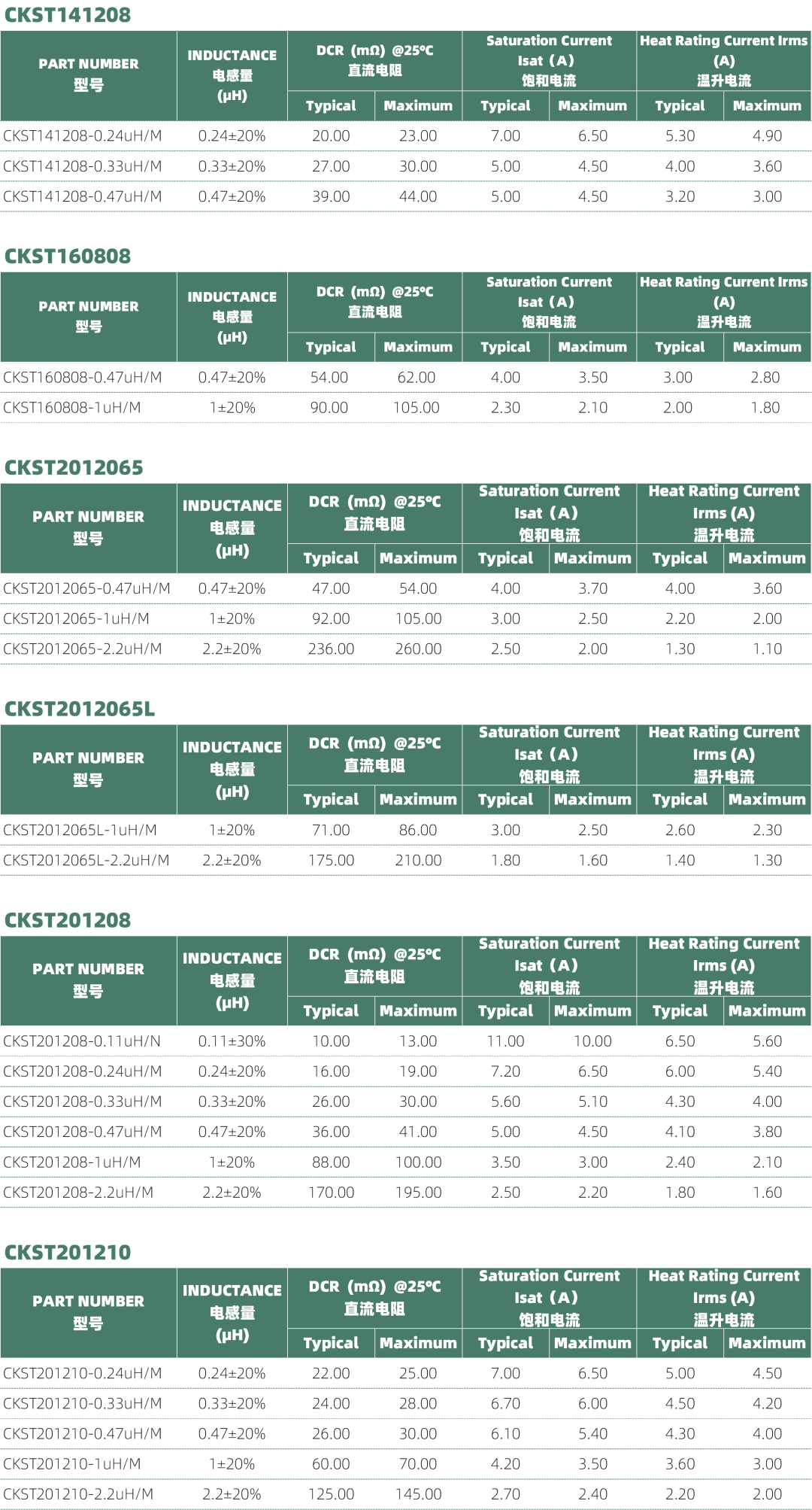 Irms: For Max. Value, ΔT<40℃;for Typ. Value, ΔT is approximate 40℃.