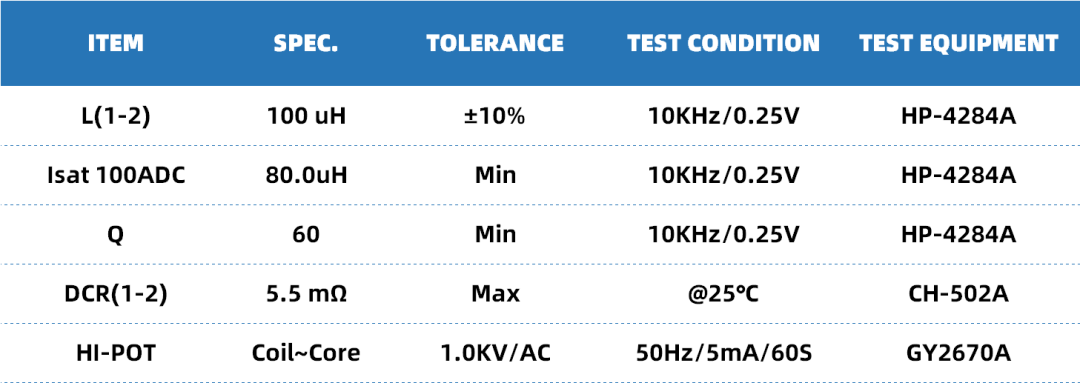 3. L,Q,DCR,HI-POT,TR is full-test before shipment, Isat is sampling test.