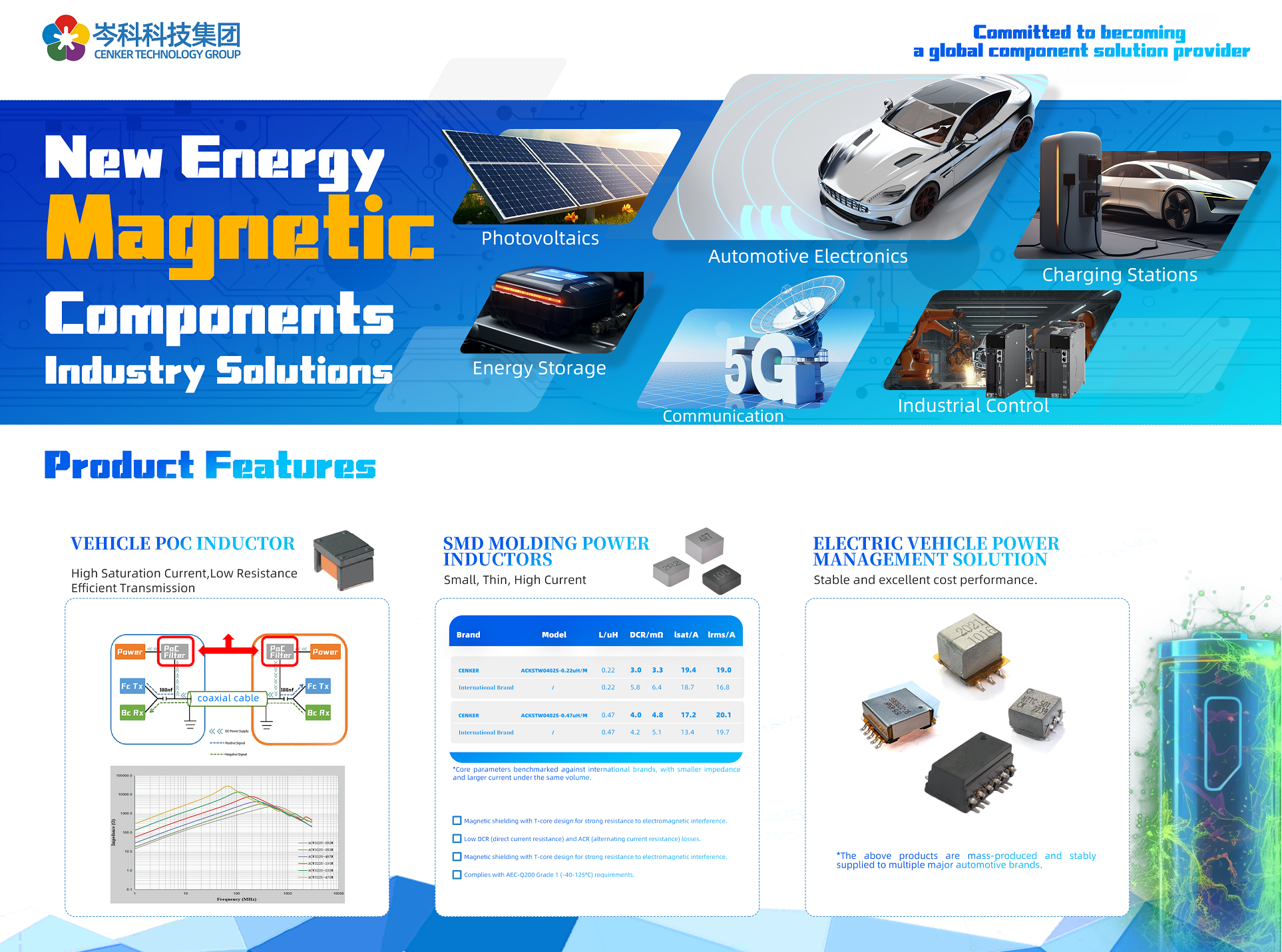 岑科科技作為行業(yè)技術領先的電感元件制造商,一直致力于向客戶提供高品質(zhì)、高性能的產(chǎn)品及專業(yè)技術服務。在本次展會中,我們特別展出了針對汽車電子和新能源領域的創(chuàng)新產(chǎn)品解決方案,詳細介紹各個模塊的應用環(huán)境及特點,為客戶提供精準的產(chǎn)品選型指導。